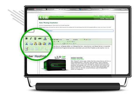 TEXT & BILDKinderleicht editieren.Ändern Sie den Inhalt Ihrer Website mit wenigen Klicks mittels eines Online-Editors, angelehnt an der Einfachheit von Microsoft Word. Bilder können mittels einer Uploadfunktion sofort in die gewünschte Seite eingefügt werden. Der Upload optimiert das Bild automatisch fürs Web. |